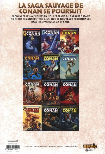 Pour renverser un roi décadent, Conan doit plonger dans des douves de sang remplies de monstres horribles ! Et après avoir survécu de justesse à un naufrage, notre barbare se réveille sur les rives d'une île remplie de belles et mortelles guerrières chevauchant des tigres ! Ensuite, le sadique roi Razak attire Conan dans un labyrinthe rempli de pièges mortels ! Et le scénariste Roy Thomas revient pour un mystère à chambre close se déroulant en pleine mer, avec Conan jouant le rôle du détective ! Un groupe d'auteurs super talentueux est au rendez-vous pour ce cinquième Omnibus de la série culte Savage Sword of Conan. En effet, en plus des emblématiques Roy Thomas et John Buscema, les scénaristes Michael Fleisher et Bruce Jones rejoignent les aventures de Conan le Barbare.