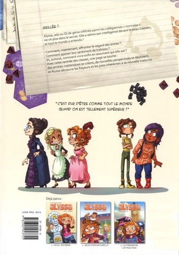 Pour Alyssa, ado au QI de génie infiltrée dans un collège normal, l'heure de tomber le masque a sonné ! Grillée ! Alyssa ne vit plus dans le secret, elle a admis son intelligence devant le beau Damien, et tout le monde a entendu ! Comment, maintenant, affronter le regard des autres ? Et, surtout, comment vivre enfin en assumant qui on est ? Avec cette rentrée des classes, une page se tourne : des amitiés inattendues se créent, et Alyssa découvre les frayeurs et les joies inhérentes à sa nouvelle maturité.