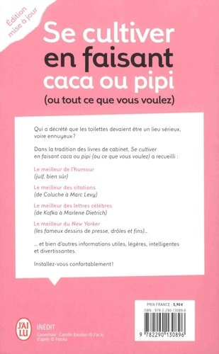 Qui a décrété que les toilettes devaient être un lieu sérieux, voire ennuyeux ? Dans la tradition des livres de cabinet, Se cultiver en faisant caca ou pipi (ou ce que vous voulez) a recueilli : le meilleur de l'humour (juif, bien sûr) ; le meilleur des citations (de Coluche à Marc Levy) ; le meilleur des lettres célèbres (de Kafka à Marlene Dietrich) ; le meilleur du New Yorker (les fameux dessins de presse, drôles et fins)... Et bien d'autres informations utiles, légères, intelligentes et divertissantes. Installez-vous confortablement !