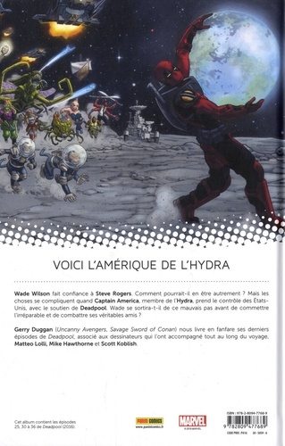 Deux sagas complètes qui viennent clore la période Marvel NOW ! du mercenaire. Après des vacances à l'autre bout de la galaxie, Deadpool revient aux Etats-Unis tandis que le pays est aux mains de l'Hydra. Mais si Captain America est à la tête du pays, c'est qu'il doit y avoir de bonnes raisons, non ? Wade Wilson fait confiance au meilleur des hommes. Dommage que ce soit au pire moment !