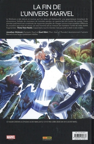 Le Multivers a été détruit et tout ce qu'il en reste est Battleworld, une gigantesque mosaïque de dimensions, formée de morceaux de mondes perdus, en guerre les uns contre les autres. Cette planète-patchwork est constituée de royaumes peuplés de visages connus mais toutefois différents du souvenir que nous en avons. Un seul homme est en mesure de maintenir l'unité de cette réalité fragmentée : Victor Von Fatalis. Cependant, tout le monde n'est pas prêt à obéir à ses ordres... Jonathan Hickman (Fantastic Four) et Esad Ribie (Thor : God of Thunder) révolutionnent l'univers Marvel d'une façon totalement inédite.