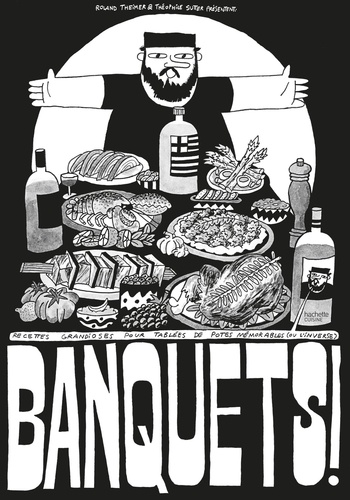 Attention, voici un livre hors normes ! Hors normes par ses dimensions, par son concept et par son contenu. Mélange entre l'illustration humoristique et le contenu culinaire, la bande dessinée et le livre de recettes, Banquets ! est un livre qui se lit, qui se cuisine, qui se dévore. Sur chaque planche l'avatar du chef Roland Theimer, mis en image par son ami illustrateur Théophile Sutter, se promène et se démène pour nous expliquer les recettes idéales d'un banquet entre amis. Pensé pendant le premier confinement, l'ouvrage prend forme lorsque les deux auteurs se rendent compte du plaisir qu'il y a à retrouver les siens autour d'une grande tablée après des semaines d'absence. Epaule d'agnelle façon naufragé, délice de saucisse sur lentilles et navets, cochon du beaujolpif, homard au lard, ventrèche de thon au caviar de citron caviar... Les recettes sont festives, conviviales, joyeuses et se réalisent à plusieurs, entre copains. L'ouvrage est généreux, les plats sont délicieux, on se régale d'avance en tournant les pages de ce superbe objet. - 20 recettes spectaculaires - De superbes illustrations et des recettes réalisables - Une cuisine amicale et joyeuse qui fait rêver en ces temps difficiles - On prend du plaisir à lire le livre, à cuisiner les recettes et à les déguster