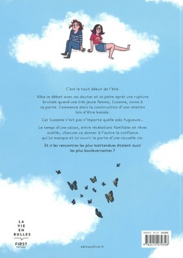 Un roman graphique qui raconte avec beaucoup de délicatesse et de tendresse la richesse d'une rencontre, le bonheur que deux femmes (presque) complètement étrangères l'une pour l'autre ont d'apprendre l'une de l'autre. C'est le tout début de l'été. Alba se débat avec ses doutes et sa peine après une rupture brutale quand une très jeune femme, Suzanne, sonne àsa porte. Commence alors la construction d'une relationloin d'être banale. Car Suzanne n'est pas n'importe quelle ado fugueuse... Le temps d'une saison, entre révélations familiales et rêves oubliés, chacune va donner à l'autre la confiancequi lui manque et lui ouvrir la porte d'une nouvelle vie. Et si les rencontres les plus inattendues étaient aussi les plus bouleversantes ?