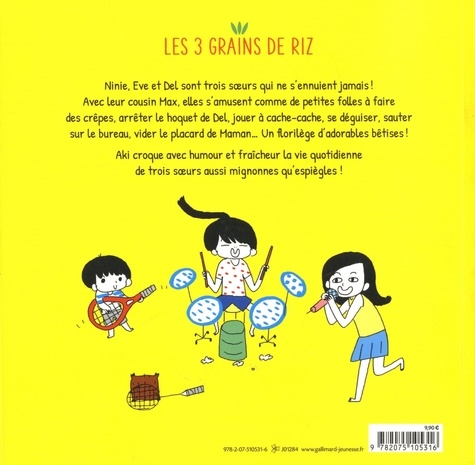 Ninie, Eve et Del sont trois soeurs qui ne s'ennuient jamais ! Avec leur cousin Max, elles s'amusent comme de petites folles à faire des crêpes, arrêter le hoquet de bel, jouer à cache-cache, se déguiser, sauter sur le bureau, vider le placard de Maman... Un florilège d'adorables bêtises ! Aki croque avec humour et fraîcheur la vie quotidienne de trois soeurs aussi mignonnes qu'espiègles !
