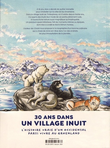 A 18 ans, Max a décidé de quitter Marseille pour s'installer sur la côte Est du Groenland. Dans le village isolé de Tiniteqilaaq, où il habite depuis trente ans, il a appris des Inuits leur mode de vie particulièrement rude, à l'aune d'une nature aussi magnifique qu'impitoyable. Un parcours quasi initiatique, fait de moments intimes ou épiques, dont Max a confié te récit à Simon Hureau. L'auteur de L'Oasis nous propose ici la biographie d'un homme ordinaire qui a choisi de vivre son rêve dans l'un des endroits les plus inhospitaliers de la planète...