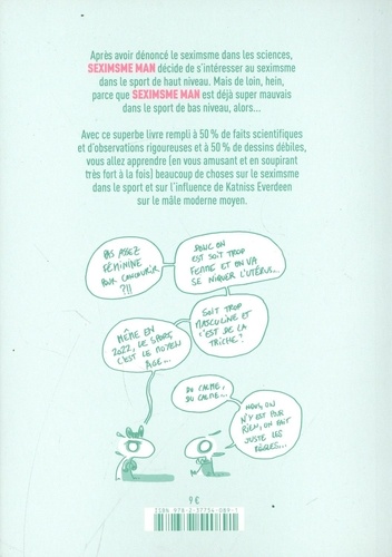 Après avoir dénoncé le seximsme dans les sciences, Seximsme man décide de s'intéresser au seximsme dans le sport de haut niveau. Mais de loin, hein, parce que Seximsme man est déjà super mauvais dans le sport de bas niveau, alors... Avec ce superbe livre rempli à 50% de faits scientifiques et d'observations rigoureuses et à 50% de dessins débiles, vous allez apprendre (en vous amusant et en soupirant très fort à la fois) beaucoup de choses sur le seximsme dans le sport et sur l'influence de Katniss Everdeen sur le mâle moderne moyen.