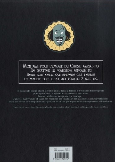 Un petit chien se glisse dans le caveau de William Shakespeare, y dérobe un os, et déclenche une terrible malédiction. Bientôt l'Angleterre est sous les eaux, la guerre civile menace, et les citoyens britanniques possédés par le théâtre de Shakespeare essaient de s'organiser et de survivre dans le chaos. L'album suit la traversée de plusieurs personnages aux prises avec les plus beaux dialogues et les pires scénarios jamais écrits par le grand dramaturge.