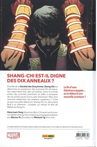 Shang-Chi est entré en possession des légendaires Dix Anneaux. Mais autant d'énergie concentrée au même endroit a attiré l'attention de tous les chasseurs de primes, assassins et syndicats du mal de l'univers Marvel ! Et quelle responsabilité porte le détenteur des Anneaux ? La Phase 4 du Marvel Cinematic Universe étant maintenant terminée, nombreux sont ceux qui pensent que la meilleure surprise a été l'arrivée du Maître du Kung Fu sur grand écran. En comics, le parti pris de Marvel est de sortir des sagas complètes et indépendantes, mais qui forment un tout, à la manière de saisons d'une série. Voici le dernier chapitre en date !
