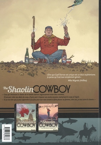 Le Shaolin cowboy traverse un désert sans fin à dos d'une mule particulièrement bavarde et un poil philosophe, lorsqu'il tombe dans le guet-apens du Roi Crabe et de ses (très) nombreux hommes de main. Le voyageur devra alors faire preuve d'habileté au kung-fu pour se débarrasser de ses (très) nombreux adversaires. Si seulement il n'avait pas massacré la famille du roi-crabe en dégustant un plateau de fruits de mer. Et pour tant, les ennuis ne font que commencer... Geof Darrow multiplie les scènes violentes comme les plus mauvais jeux de mots. Son dessin, d'une générosité extraordinaire, ne néglige aucun détail, pas un grain de sable ne manque dans ce désert pourtant si peuplé. Mais il ne faut pas s'y tromper, derrière ce livre de pure distraction, se cache le miroir à peine déformé d'une Amérique malade de ses excès de violence, de puritanisme, et de populisme.