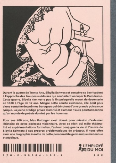 Durant la guerre de Trente Ans, Sibylla Schwarz et son père se barricadent à l'approche des troupes suédoises qui souhaitent occuper la Poméranie. Cette guerre, Sibylla n'en verra pas la fin puisqu'elle meurt de dysenterie en 1638 à l'âge de 17 ans. Malgré cette courte existence, elle écrit plus d'une centaine de poèmes baroques qui dénotent d'une grande puissance lyrique. La jeune prodige, privée d'amitié et d'amour, n'aura pourtant connu qu'un monde de poésie dominé par les hommes. On estime son poème "? Une chanson contre l'envie ? " comme "? probablement le premier poème sans compromis féministe de la littérature mondiale ? ". Pendant près de deux siècles, Sibylla Schwarz était considérée comme une figure littéraire de premier ordre avant de tomber dans l'oubli. Pour les 400 ans de la Sibylla, Max Baitinger s'est donné pour mission d'exhumer l'histoire de cette poétesse visionnaire. Avec ce récit, qui mêle théâtralité et expérimentations formelles, l'auteur de Röhner conjugue la vie et l'oeuvre de Sibylla Schwarz à ses propres problématiques de créateur. Il nous offre ainsi une biographie insolite de cette personnalité germanique, méconnue et atypique.