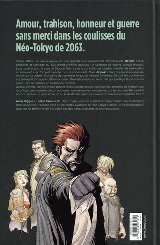 Tokyo, 2063. La ville a évolué en une gigantesque mégalopole techno-punk. Renjìro est le conseiller et stratege du plus grand criminel japonais : le seigneur de guerre yakuza Hideaki. Sous sa direction, le clan du Dragon Noirr a pris le contrôle des quartiers malfamés de Honshu en éliminant avec force et cruauté tous ses opposants. Mais Hideaki a d'autres ambitions que de régner sur la pègre : il projette de renverser le gouvernement lui-môme. Sa soif de domination est telle qu'il s'imagine défaire la junte ultra-nationaliste et surarmée qui protège le pouvoir en place. Rien ne semble en mesure de l'arrêter. Déchu, éliminé, Renjiro n'aura d'autre choix que de devenir un pion des ennemis de Hideaki, qui lui offrent une nouvelle vie, un nouveau nom, et une technologie encore jamais vue. Restera-t-il encore une fois un pion, à l'heure où le destin du Japon se joue entre deux ennemis prêts à tout ? Andy Diggle et Lainil Francis Yu, deux méga-stars de la planète "super-héros", nous plongent dans un univers futuriste riche et inattendu, évoquant le Néo-Tokyo d'Akira. Un cocktail explosif d'action, de thriller et de S.F. porté par des héros puissants et charismatiques.