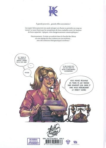 A grands pouvoirs... grands effets secondaires ! Les super-héros peuvent eux aussi attraper un rhume ou prendre un coup au moral. Le souci étant que les symptômes de leurs maladies sont A la hauteur de leurs capacités : épiques, voire dangereusement catastrophiques ! Heureusement, il existe un endroit dans la Faculté des Héros où ne équipe de choc traitera ces cas extrêmes... avec des solutions thérapeutiques extrêmes !