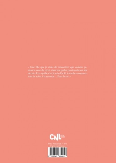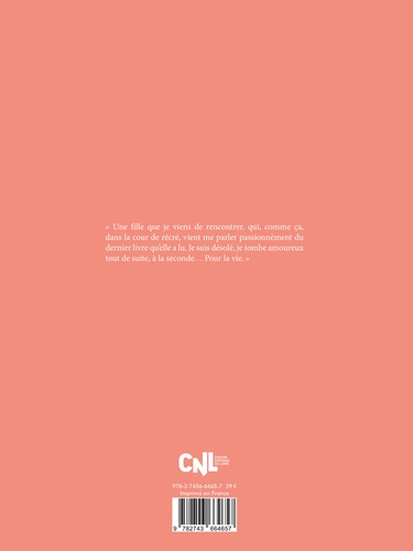 " Une fille que je viens de rencontrer, qui, comme ça, dans la cour de récré, vient me parler passionnément du dernier livre qu'elle a lu. Je suis désolé, je tombe amoureux tout de suite, à la seconde... Pour la vie. "