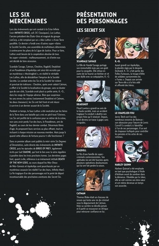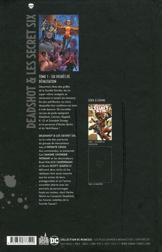 Désormais libres des griffes de la Société Secrète, les six super-vilains renégats se retrouvent à remplir les missions les plus périlleuses, au cours Désormais libres des griffes de la Société Secrète, les six super-vilains renégats se retrouvent à remplir les missions les plus périlleuses, au cours desquels leur confiance est mise à rude épreuve. De nouvelles recrues de poids rejoignent Deadshot, Catman, Ragdoll et Scandal Savage en la personne d'Harley Quinn et du Ventriloque ! Contient : Secret Six : Six Degrees of Devastation + Birds of Prey #104-109.