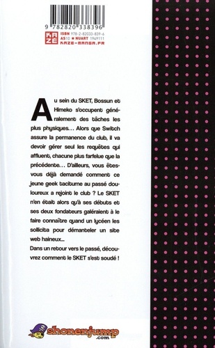 Au sein du SKET, Bossun et Himeko s'occupent généralement des tâches les plus physiques... Alors que Switch assure la permanence du club, il va devoir gérer seul les requêtes qui affluent, chacune plus farfelue que la précédente... D'ailleurs, vous êtes-vous déjà demandé comment ce jeune geek taciturne au passé douloureux a rejoint le club ? Le SKET n'en était alors qu'à ses débuts et ses deux fondateurs galéraient à le faire connaître quand un lycéen les sollicita pour démanteler un site web haineux... Dans un retour vers le passé, découvrez comment le SKET s'est soudé !