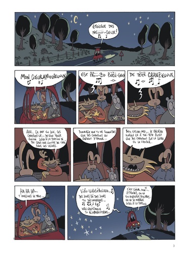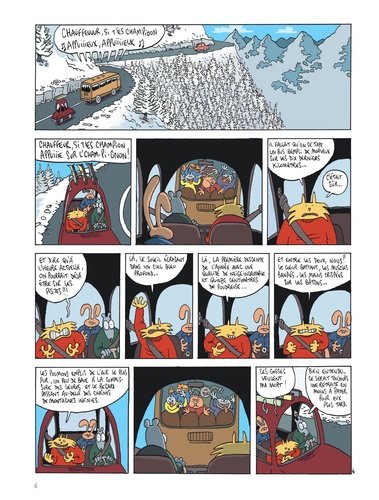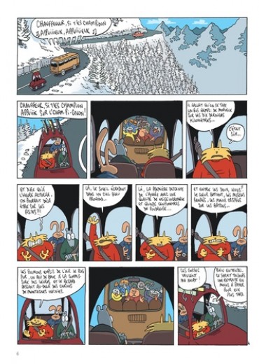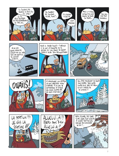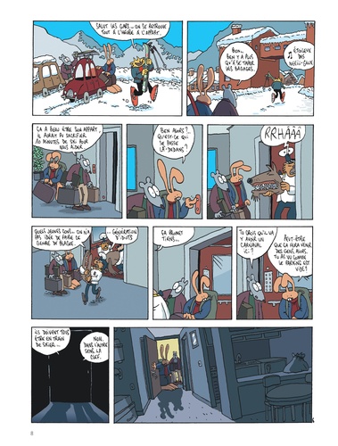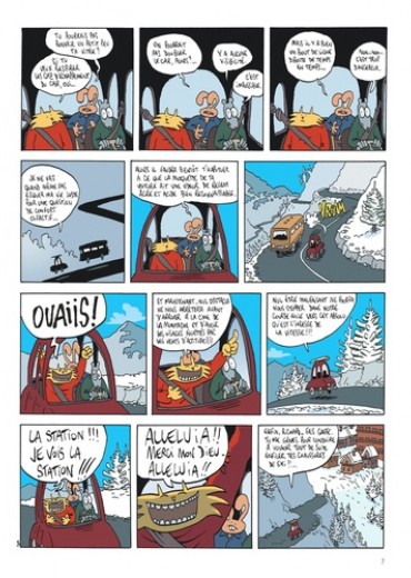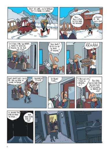 Lapinot, Richard, Pierrot et Titi vont aux sports d'hiver. Au début, Lapinot a mal au coeur à cause des virages en bagnole. Après, ils ne peuvent pas faire de ski à cause du loup qui a déjà zigouillé trois skieurs. Après, ils peuvent en faire parce que le loup est parti, mais c'est coton de louer des chaussures et le reste parce que Lapinot chausse du 88 et Pierrot a "juste besoin de gants normaux à quatre doigts". Après, Richard descend tout schuss du matin au soir, et les autres, qui trouvent globalement que le paysage est pentu, comptent leurs abattis quand ils se ramassent. Le reste du temps, ils échangent des vannes poilantes, ils emballent les filles - mollement : Lapinot ne se sent pas d'entamer une relation en ce moment - ou ils jouent à des jeux idiots et dansent sur Cloclo : "Les sirènes du poort d'alee-xandrie chantencore la même méé-lodie. . ". C'est brillant, drôle, un rien désenchanté, et les amateurs de pistes noires, de salades entre copains et de graphisme ébouriffant devraient se régaler.
