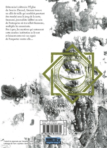 Déterminé à détruire l'Eglise du Sourire Eternel, Uozumi trouve un allié de taille qui semblait pourtant être tombé sous le joug de la secte. Imanami, journaliste infiltré au sein de l'entreprise où travaillait Kamome, multiplie les assassinats. Peu à peu, les mystères qui entourent cette sombre institution se lèvent et laissent entrevoir un espoir de l'emporter contre elle... Publiée chez Nihon Bungeisha, Smile ! est une oeuvre qui plonge le lecteur dans les ténèbres d'un culte inquiétant. Hattori Mitei vous entraîne dans un thriller des plus haletants et un drame psychologique inoubliable. "Un thriller psychologique captivant". Francetvinfo. fr "Un suspense totalement addictif". Le Point Pop