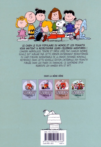 Le chien le plus populaire du monde et les peanuts vous invitent à redécouvrir leurs célèbres aventures ! L'univers merveilleux, tendre et drôle créé par charles monroe schulz est sublimé par cette version entièrement remastérisée du chef-d'oeuvre indémodable de la bande dessinée mondiale. Retrouvez dans cette nouvelle édition l'intégrale des peanuts publiée dans les pages du dimanche. Ce quatrième opus regroupe les années 1976 et 1977.