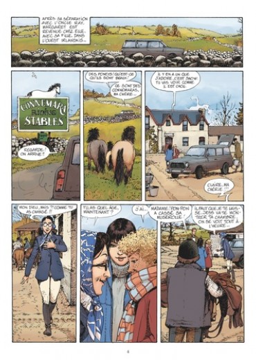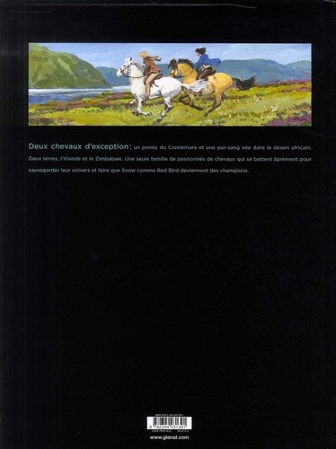La passion du cheval est une affaire de famille Claire, qui n'a connu que les terres chaudes de l'Afrique, est invitée par sa cousine Jessica à passer ses vacances de Noël dans la verte Irlande. Elle y fait la rencontre de Snow, un très beau double-poney qui est la coqueluche du club tenu par sa tante Margaret. La relation très forte entre Jessica et Snow rappelle à Claire celle qu'elle entretient avec sa pouliche Red Bird. Pendant ce temps, au pays, le président Mugabé et ses milices mènent la vie dure au ranch Wakefield. Claire, loin du tumulte, n'imagine pas que son retour risque d'être écourté par la marche de l'Histoire... Avec l'appui de Camille Vercken, éleveuse de pur-sang, Rodolphe et Michel Faure (sans doute le meilleur dessinateur de chevaux de la bande dessinée contemporaine) poursuivent leur série placée sous le signe du sport équestre, entre saga familiale et parcours initiatique.
