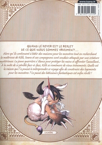 Alors qu'ils continuent à bâtir des maisons pour les monstres tout en recherchant la maîtresse de Kilik, Soara et ses compagnons sont soudain attaqués par une créature mystérieuse. La jeune guerrière s'élance pour protéger les nains et affronter l'assaillant... A la suite de ce pénible face-à-face, Kilik se remémore de vieux événements. Quelle est la raison qui l'a poussé à entreprendre ce voyage afin de construire des logements pour les monstres ? Le passé des bâtisseurs fantastiques est enfin révélé !