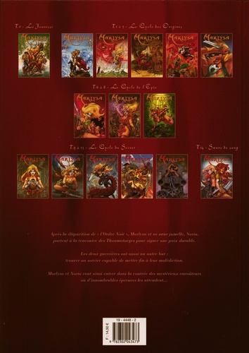 Marlysa et sa soeur, alliées face à une sombre malédiction ! La ville de Dompour semble hors de danger après la disparition de "l'ordre noir" . Prudente, Marlysa souhaite rencontrer les castes des Thaumaturges pour signer une paix durable dans tout le pays. à ses côtés : sa soeur jumelle Noria. Toutes deux ont aussi un but secret : trouver un thaumaturge capable de mettre fin à leur malédiction pour enfin vivre à "visage découvert" ... Une fois les corridors d'accès trouvés, reste à franchir nombre d'épreuves dans la contrée des mystérieux envoûteurs... Marlysa, Noria et leurs compagnons plongent, sans le savoir, au coeur d'un terrible complot...