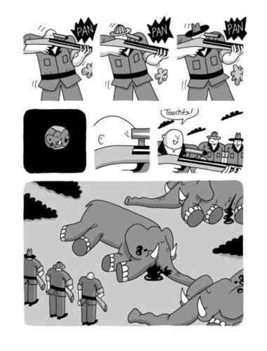 Par solidarité avec un petit dont la mère vient de se faire tuer pour son ivoire, les éléphants décident de commettre un attentat suicide au pays des hommes. C'est le carnage. Une souris, dont l'ami s'est fait trucidé par un piège à fromage, tente de copier le mode opératoire des éléphants. C'est juste une tentative ratée et un suicide inutile. On vit dans un monde cruel et sans pitié, où la bêtise humaine, le désir, la vengeance et l'abus du pouvoir sont rois. Que l'on soit humain ou animal, on est tous logés à la même enseigne : La loi du plus fort. La loi du plus riche. La loi du plus odieux. Une satire explosive en dix épisodes livrée par un Singer au sommet de son art.