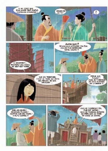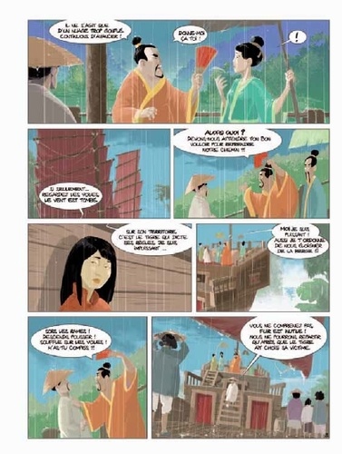 Dans la Chine du VIIe siècle, la jeune et belle Soleil du soir, abandonnée par les siens, brave les interdits et les dangers pour retrouver son amour perdu et forcer son destin... Ses aventures la mèneront des paysages mythiques des Trois-Gorges à la florissante capitale de l'époque, Xi'an. Sur sa route se succéderont personnages historiques et créatures démoniaques issues du monde des croyances et des esprits. Inspirée de contes littéraires anciens du 1er millénaire de notre ère et dans le contexte palpitant de la dynastie des Tang, la destinée de Soleil du soir s'écrit au fil des pages à la manière d'une calligraphie chinoise, empreinte d'élégance et de force de caractère...