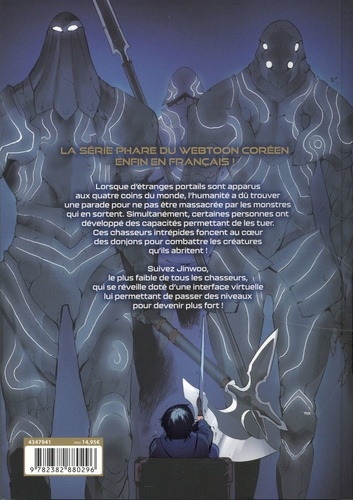 La série phare du webtoon coréen devenue un phénomène viral débarque enfin en français ! Suivez Jinwoo, un chasseur doté d'une interface virtuelle qui lui permet de passer des niveaux pour devenir plus fort ! Lorsque d'étranges portails sont apparus aux quatre coins du monde, l'humanité a dû trouver une parade pour ne pas finir massacrée entre les griffes des monstres qu'ils ont apportés avec eux. Dans le même temps, certaines personnes ont développé des capacités permettant de chasser. Ces combattants intrépides n'hésitent pas à foncer au coeur des donjons pour combattre les créatures qu'ils abritent.