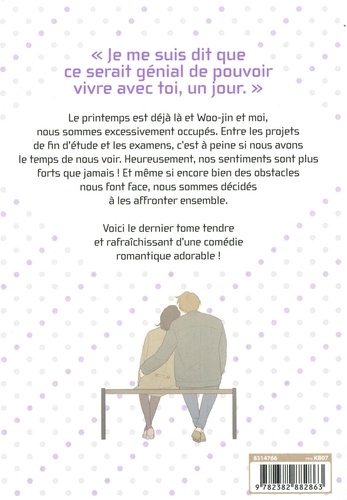 Le printemps est déjà là et Woo-jin et moi, nous sommes excessivement occupés. Entre les projets de fin d'étude et les examens, c'est à peine si nous avons le temps de nous voir. Heureusement, nos sentiments sont plus forts que jamais ! Et même si encore bien des obstacles nous font face, nous sommes décidés à les affronter ensemble. Voici le dernier tome tendre et rafraîchissant d'une comédie romantique adorable !
