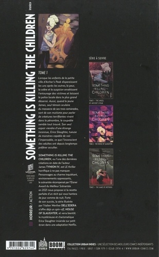 Lorsque les enfants de la petite ville d'Archer's Peak se mettent à disparaître les uns après les autres - certains sans laisser la moindre trace, d'autres dans des circonstances extrêmement violentes - la peur, la colère et la suspicion envahissent l'entourage des victimes et laissent la police locale dans le plus grand désarroi. Aussi, quand le jeune James, seul témoin oculaire du massacre de ses trois camarades, sort de son mutisme pour parler de créatures terrifiantes vivant dans la pénombre, le coupable semble tout trouvé. Son seul espoir viendra d'une étrange inconnue, Erica Slaughter, tueuse de monstres capable de voir l'impensable, ce que l'inconscient des adultes a depuis longtemps préférer occulter.