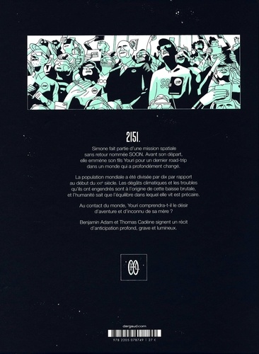En 2151, la population mondiale a été divisée par dix en raison des dégâts climatiques. L'humanité vit dans un équilibre précaire. Regroupée dans sept zones urbaines, elle a inventé de nouveaux modèles de vie sociale. Ailleurs, la nature s'étend librement. Simone, astronaute, fait partie d'une mission d'exploration spatiale nommée " SOON " : un voyage sans retour, un projet d'une ambition inédite dans l'histoire de l'humanité. Avant le grand départ, elle emmène son fils Youri pour un dernier road-trip. Au contact du monde, Youri comprendra-t-il le désir d'absolu, d'aventure et d'inconnu de sa mère ?
