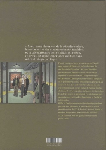 En suivant le quotidien de trois personnages plongés dans ce futur qui risquerait un jour de devenir le nôtre, Stephen Desberg met en exergue les dérives de nos sociétés dans un premier album glaçant de justesse, dont la noirceur est encore renforcée par le trait expressif et réaliste de Griffo.