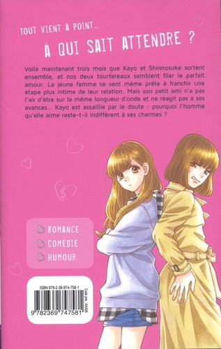 Tout vient à point... à qui sait attendre ? Voilà maintenant trois mois que Kayo et Shinnosuke sortent ensemble, et nos deux tourtereaux semblent filer le parfait amour. La jeune femme se sent même prête à franchir une étape plus intime de leur relation. Mais son petit ami n'a pas l'air d'être sur la même longueur d'onde et ne réagit pas à ses avances... Kayo est assaillie par le doute : pourquoi l'homme qu'elle aime reste-t-il indifférent à ses charmes ?