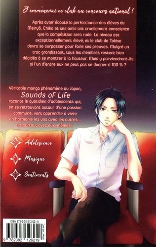 Véritable manga phénomène au Japon, Sounds of Life raconte le quotidien d'adolescents qui, en se retrouvant autour d'une passion commune, vont apprendre à vivre en harmonie les uns avec les autres... et surtout avec eux-mêmes ! Après avoir écouté la performance des élèves de Meiryô, Chika et ses amis ont cruellement conscience que la compétition sera rude. Le niveau est exceptionnellement élevé, et le club de Tokise devra se surpasser pour faire ses preuves. Malgré un trac grandissant, tous les membres restent bien décidés à se montrer à la hauteur. Mais y parviendront-ils si l'un d'entre eux ne peut pas se donner à 100 % ?