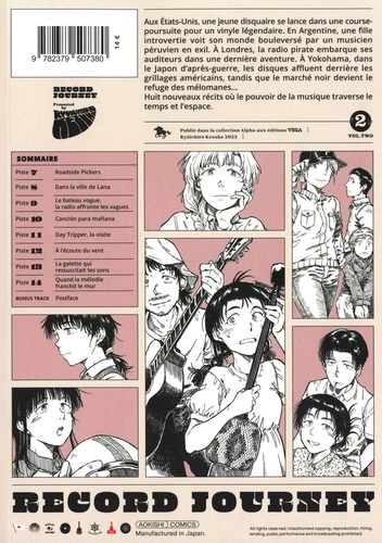 Aux Etats-Unis, une jeune disquaire tente de récupérer un précieux vinyle. En Argentine, une Japonaise rencontre un joueur de rock péruvien. A Londres, nous retrouvons Nicky alors que sa radio pirate est menacée de disparaître. Dans le Japon d'après-guerre, des disques se vendent au marché noir... A travers huit nouvelles histoires courtes autour de la musique, dans une ambiance nostalgique, nous continuons de découvrir le pouvoir de la musique, des vinyles et de la radio.
