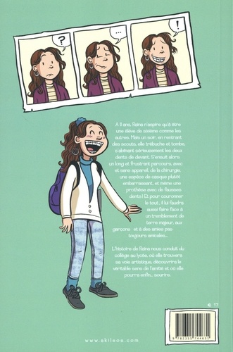 A 11 ans, Raina n'aspire qu'à être une élève de sixième comme les autres. Mais un soir, en rentrant des scouts, elle trébuche et tombe, s'abîmant sérieusement les deux dents de devant. S'ensuit alors un long et frustrant parcours, avec est sans appareil, de la chirurgie, une espèce de casque plutôt embarrassant, et même une prothèse avec de fausses dents ! Et pour couronner le tout, il lui faudra aussi faire face à un tremblement de terre majeur, aux garçons et a des amies pas toujours amicales. L'histoire de Raina nous conduit du collège au lycée, où elle trouvera sa voie artistique, découvrira le véritable sens de l'amitié et où elle pourra enfin... sourire.