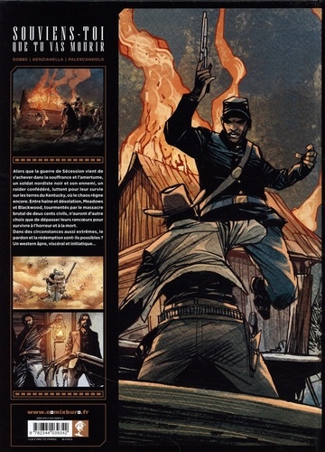 Lorsque votre pire ennemi devient votre meilleure chance de survie. Alors que la guerre de Sécession vient de s'achever dans la souffrance et l'amertume, un soldat nordiste noir et son ennemi, un raider confédéré, luttent pour leur survie sur les terres du Kentucky, là où le chaos règne encore. A travers un périple funeste, toutes leurs ressources seront mises à rude épreuve afin de lutter contre l'adversité humaine et la nature particulièrement hostile : entre haine et désolation, Blackwood et Meadows n'auront d'autre choix que de dépasser leurs rancoeurs pour survivre à l'horreur et à la mort. Mais comment ces personnages constamment sur le fil du rasoir, tourmentés par le massacre brutal de 200 civils dans la ville de Lawrence deux ans plus tôt, pourront-ils échapper au cercle immuable de la violence ? Et comment, dans des circonstances aussi extrêmes, le pardon et la rédemption sont-ils possibles ? Un western âpre, viscéral et initiatique qui réunit deux grands noms de la bande dessinée autour d'un récit chargé de messages sur les préjugés et l'horreur humaine. L'ensemble est soutenu par des dialogues percutants et de l'action survoltée.