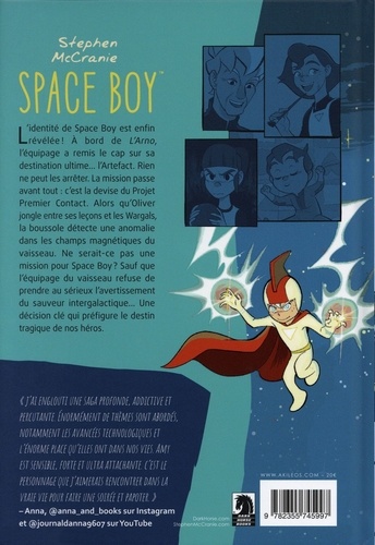 L'identité de Space Boy est révélée ! A bord de L'Arno, l'équipage a remis le cap sur sa destination ultime... l'Artefact. Rien ne peut les arrêter. La mission passe avant tout : telle est la devise du Projet Premier Contact. Alors qu'Oliver jongle entre ses leçons et les Wargals, la boussole détecte une anomalie dans les champs magnétiques du vaisseau. Ne serait-ce pas une mission pour Space Boy ? Mais l'équipage du vaisseau refuse de prendre au sérieux l'avertissement du sauveur galactique... Une décision clé qui préfigure le destin tragique de nos héros.