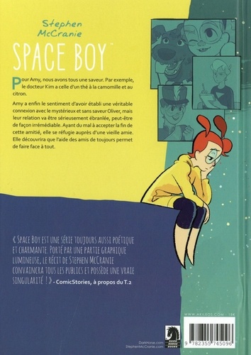 Amy a enfin le sentiment d'avoir établi un véritable lien avec le mystérieux Oliver, mais leur relation se retrouve ébranlée - peut-être pour toujours. Et alors qu'Amy a du mal à accepter la fin de cette relation, elle en appelle à une vieille amie. Elle réalisera que les amis de chaque étape de sa vie rendent tout meilleur. Space Boy est un récit de science-fiction sur une lycéenne qui appartient à une époque différente, un garçon possédé par un vide aussi profond que l'espace, un artefact extraterrestre, un meurtre mystérieux et un amour qui traverse les années-lumière.