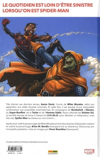 Le quotidien est loin d'être sinistre lorsqu'on est Spider-Man. Très discret ces derniers temps, Aaron Davis, l'oncle de Miles Morales, refait son apparition aux côtés d'autres criminels. Et cette fois, il est équipé d'une redoutable combinaison aux propriétés arachnéennes. En compagnie de Bombshell, d'Electro, du Super-Bouffon, de la Tache et de l'Homme Sable, Aaron refonde les Sinister Six. La terrible équipe se lance à l'assaut du S.H.I.EL.D. pour dérober un héliporteur, mais très vite, Spider-Man se dresse sur son chemin...
