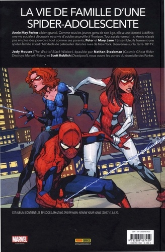 Annie May Parker a bien grandi. Comme tous les jeunes gens de son âge, elle a une identité à définir, une vie sociale à découvrir et sa vie d'adulte se profile à l'horizon. Tout serait normal... si Annie n'avait pas en plus des pouvoirs, tout comme ses parents, Peter et Mary Jane ! Ensemble, ils forment une spider-famille et ont l'habitude de patrouiller dans les rues de New York. Bienvenue sur la Terre-18119. Jody Houser (The Web of Black Widow), épaulée par Nathan Stockman (Cosmic Ghost Rider Destroys Marvel History) et Scott Koblish (Deadpool), nous ouvre les portes du domicile des Parker.