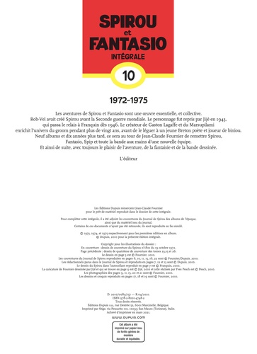 La réédition chronologique et intégrale d'une des oeuvres majeures de la bande dessinée. Jean-Claude Fournier a insufflé la poésie de sa Bretagne natale aux aventures de Spirou et Fantasio. Et il a ajouté l'hilarant Itoh Kata à la galerie de personnages léguée par ses prédécesseurs. Ce dixième volume reprend, dans leur ordre de création, les histoires suivantes : Tora Torapa, Le gri-gri du Niokolo-Koba, Du cidre pour les étoiles, Vacances à Brocéliande.