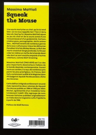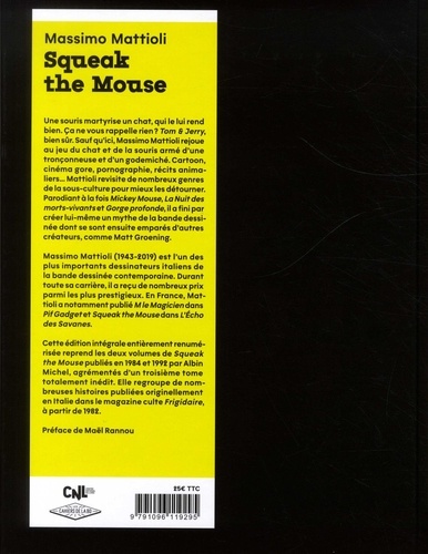 Une souris martyrise un chat, qui le lui rend bien. Ca ne vous rappelle rien ? Tom & Jerry, bien sûr. Sauf qu'ici, Massimo Mattioli rejoue au jeu du chat et de la souris armé d'une tronçonneuse et d'un godemiché. Cartoon, cinéma gore, pornographie, récits animaliers... Mattioli revisite de nombreux genres de la sous-culture pour mieux les détourner. Parodiant à la fois Mickey Mouse, La Nuit des morts-vivants et Gorge profonde, il a fini par créer lui-même un mythe de la bande dessinée dont se sont ensuite emparés d'autres créateurs, comme Matt Groening.