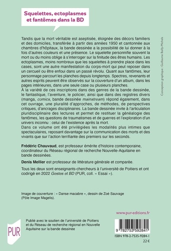 Tandis que la mort véritable est aseptisée, éloignée des décors familiers et des domiciles, transférée à partir des années 1950 et cantonnée aux chambres d'hôpitaux, la bande dessinée a la possibilité de lui donner à la fois d'autres couleurs et une présence. Le squelette personnifie souvent la mort ou du moins oblige à s'interroger sur la finitude des êtres humains. Les ectoplasmes, moins nombreux que les squelettes à prendre place dans les cases, sont une autre manifestation du corps-mort qui peut reposer dans un cercueil ou être enfoui dans un passé révolu. Quant aux fantômes, leur personnage parcourt les planches depuis longtemps. Spectres, revenants et autres esprits peuvent être observés sur la couverture d'un album, dans les pages intérieures, dans une seule case ou plusieurs planches.