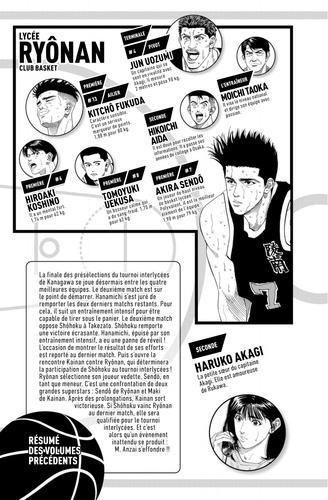 La finale des présélections arrive à son dénouement ! Shôhoku est sur le point de jouer le match contre Ryônan qui déterminera sa participation au tournoi interlycées ! Ryônan voit son attaque renforcée par Fukuda. Du côté de Shôkoku, l'entraîneur, monsieur Anzai, est absent. De plus, le capitaine Akagi n'a pas encore la cheville très assurée...