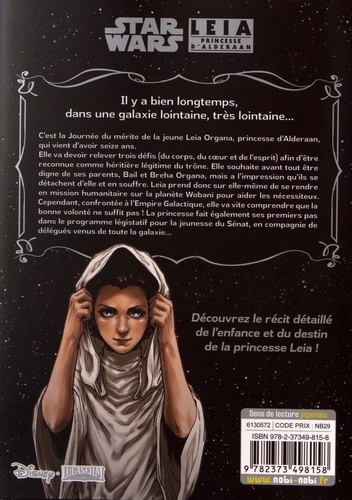 C'est la Journée du mérite de la jeune Leia Organa, princesse d'Alderaan, qui vient d'avoir seize ans. Elle va devoir relever trois défis (du corps, du coeur et de l'esprit) afin d'être reconnue comme héritière légitime du trône. Elle souhaite avant tout être digne de ses parents, Bail et Breha Organa, mais a l'impression qu'ils se détachent d'elle et en souffre. Leia prend donc sur elle-même de se rendre en mission humanitaire sur la planète Wobani pour aider les nécessiteux. Cependant, confrontée à l'Empire Galactique, elle va vite comprendre que la bonne volonté ne suffit pas ! La princesse fait également ses premiers pas dans le programme légistatif pour la jeunesse du Sénat, en compagnie de délégués venus de toute la galaxie... Découvrez le récit détaillé de l'enfance et du destin de la princesse Leia !