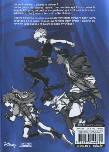 Un forgeron de sabres lasers, une esclave qui lutte contre le joug de l'Empire, un Jedi et son padawan qui explorent la bordure extérieure, des jumeaux issus du côté obscur... Quatre histoires courtes qui s'inscrivent dans l'univers Star Wars, adaptées de la série animée évènement Star Wars : Visions qui revisite avec audace et talent la mythique saga !