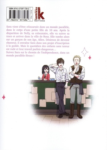 Un isekai touchant et baigné de magie par l'auteure de La Nouvelle vie de Lili ! Sara vient d'être réincarnée dans un monde parallèle, dans le corps d'une petite fille de 10 ans. Après la disparition de Nelly, sa colocataire, elle va suivre sa trace et arriver dans la ville de Rosa. Elle tombe alors sur un garçon de son âge, Allen. Désireux de devenir chasseur, il entraîne Sara dans son projet d'inscription à la guilde. Mais le quotidien des enfants sans tuteur est rude et leur travail parfois dangereux... Suivez Sara sur le chemin de l'indépendance, dans un monde parallèle féroce !