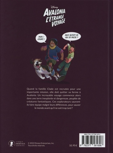 Retrouvez l'histoire du film Disney Avalonia, l'Etrange Voyage dans une magnifique bande dessinée ! Ce livre de 56 pages comprend une présentation des personnages, des citations du film et l'histoire complète au format BD. A lire dès 7 ans. Quand la famille Clade est recrutée pour une importante mission, elle doit quitter sa ferme à Avalonia. Un incroyable voyage commence alors dans une terre inexplorée et dangereuse, peuplée de créatures fantastiques. Ces explorateurs sauront-ils faire équipe malgré leurs différences, pour sauver le monde avant qu'il ne soit trop tard ?