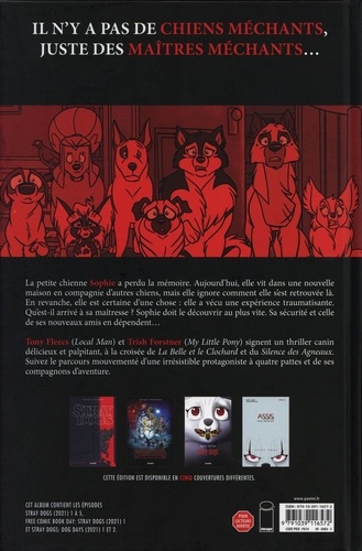 Sophie ne se souvient plus de ce qu'il s'est passé. Comment est-elle arrivée dans cette maison ? Qui est ce nouveau maître qui prend tellement bien soin de tous ces chiens ? Où est passée sa maîtresse ? La petite Sophie ne s'en souvient pas mais ce n'est pas sa faute : il n'y a pas de mauvais chiens, juste de mauvais maîtres. Avec STRAY DOGS, plongez dans un thriller canin aussi adorable que terrifiant, à mi-chemin entre La Belle et le Clochard et Le Silence des Agneaux. Le one-shot Stray Dogs est l'un des plus grands succès d'Image Comics (la principale maison d'édition derrière Marvel et DC) en 2021. Les auteurs, particulièrement connus pour leur travail sur la franchise Mon Petit Poney, nous offre un style graphique très inspiré par les dessins animés des années 80. Un décalage malin qui tranche avec un scénario lorgnant du côté thriller, avec pour protagoniste humain un serial killer qui récupère les chiens de ses victimes.